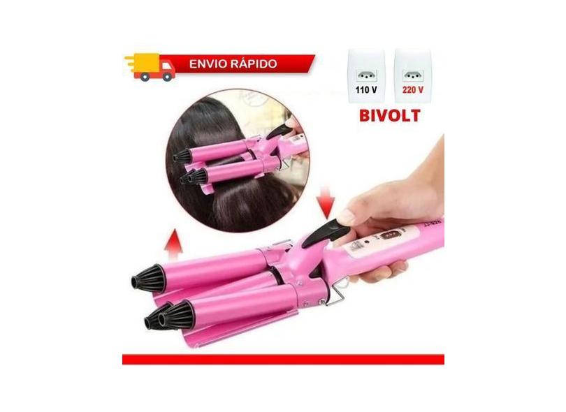 Chapinha Modelador Cabelo Cerâmica Tri-Onda Ondulador Bivolt - Junjun