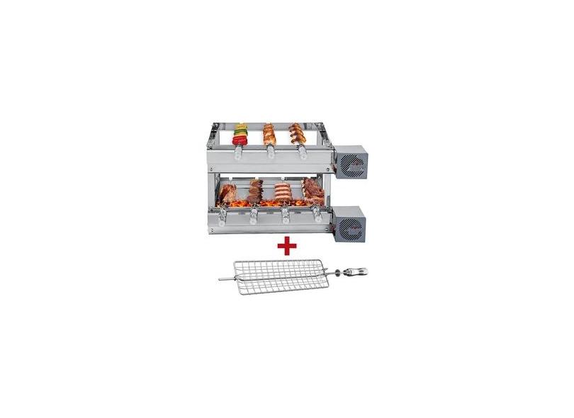 Churrasqueira Giratória Artinox Grill com 7 Espetos, 2 andares e 2 Motores Bivolt do Lado Direito + Grelha Côncava