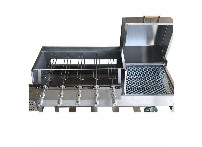 Churrasqueira Giratoria Inox Mista Bafo e Grill Grande Tamanho 108 Com Kit Giratório 5 Espetos