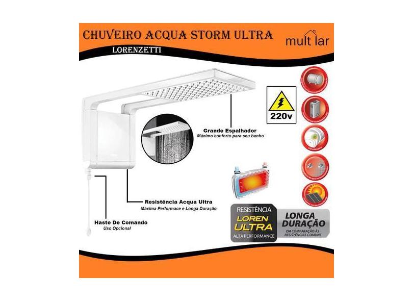 Ducha 7800W 220V Acqua Storm Ultra Lorenzetti Branco Mod.7510050
