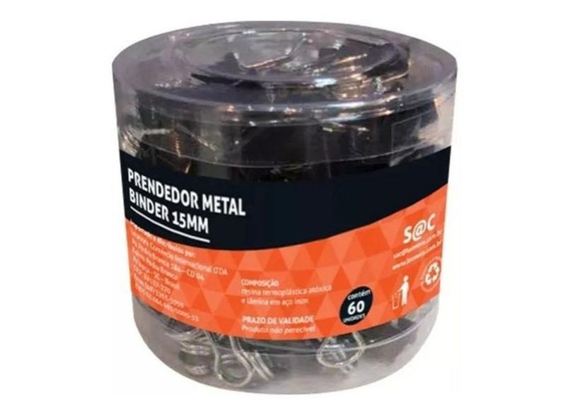 Prendedor De Papel Binder Clip 15mm Caixa Com 60 Unidades