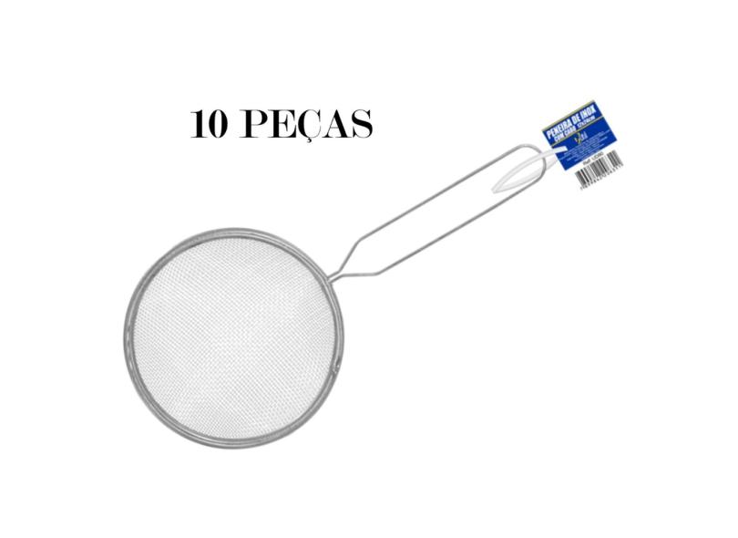Kit 10 Peças Peneira Coador Inox com Cabo 12x24 Cm