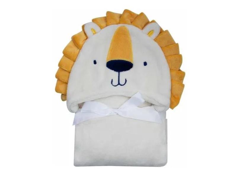 Manta Cobertor Roupão Capuz De Leão Bege Microfibra Barato Atacado
