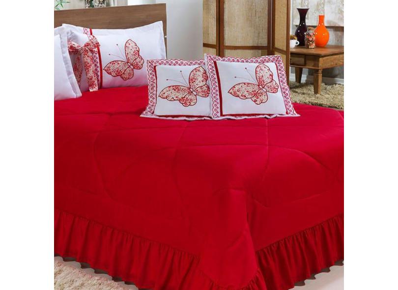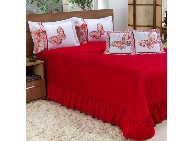 Kit Cobre Leito Borboletas Casal Queen 07 Peças Bordadas -