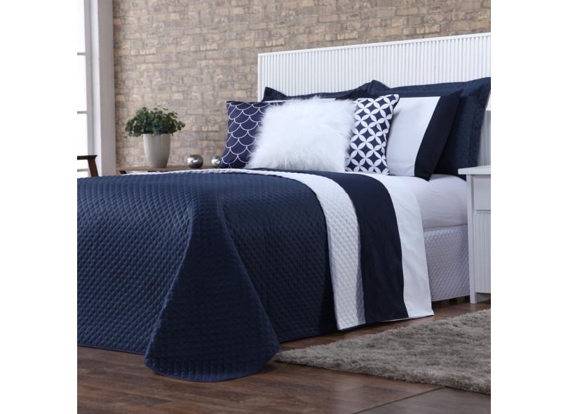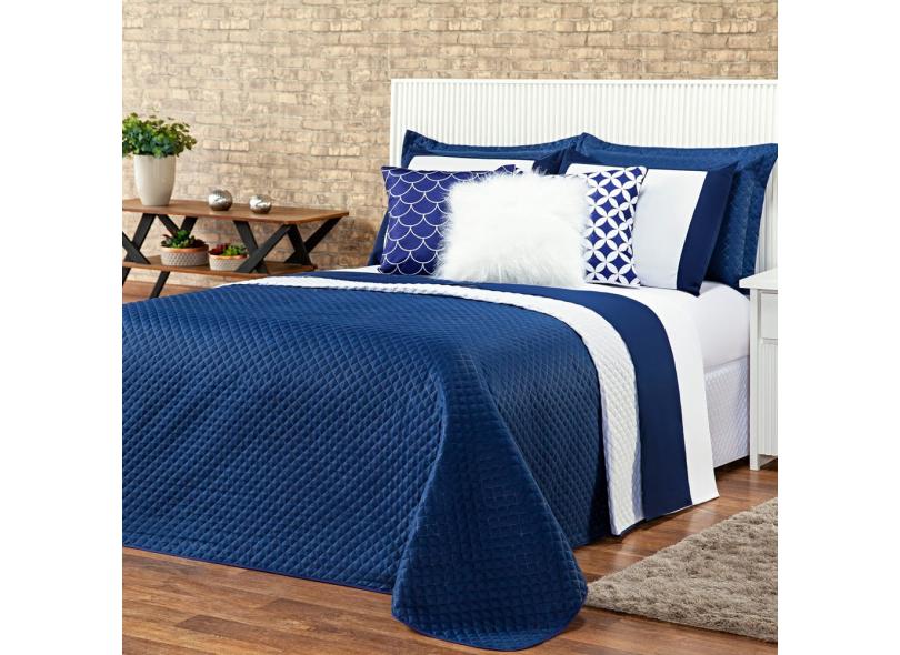 Kit Cobre Leito Miami Marinho/ Dupla Face Queen 06 Peças