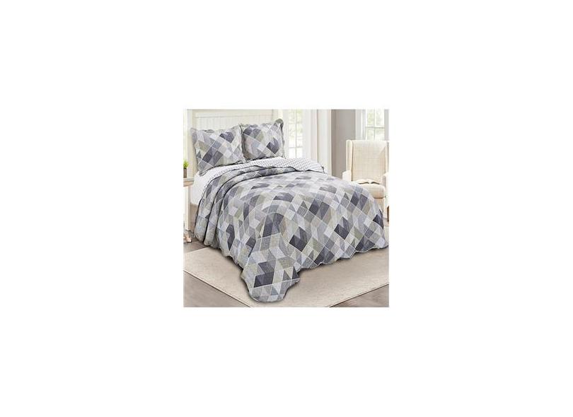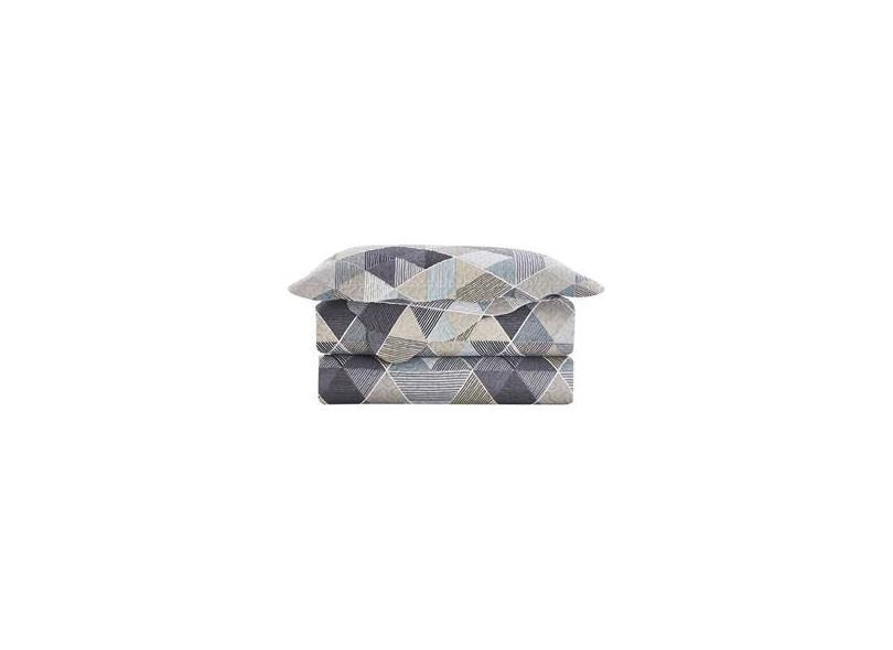 Kit Colcha Casal Patchwork Evolution 3 Peças Geométrica Dupla Face E Bege Camesa