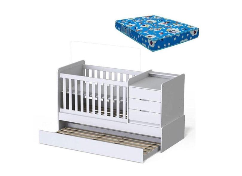 Berço Americano Multifuncional Cleo Branco Acetinado Com Colchão Ortobom - Carolina
