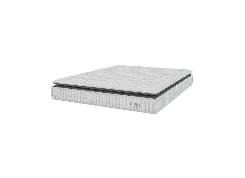Colchão Casal King Molas Ensacadas City Pillow Top 193x203x23cm Branco/Preto Hellen - Suporta até 110kg por Pessoa