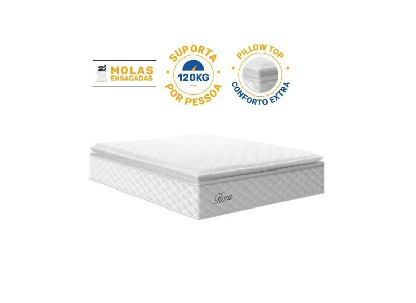 Colchão de Molas Ensacadas Pillow Top Flora Casal 138cm - Lucas Colchõ