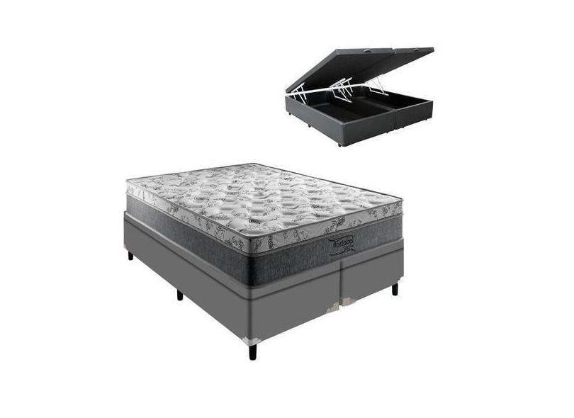 Colchão Queen Palermo Mola Ensacada e Base Box Baú Cinza - Portobel