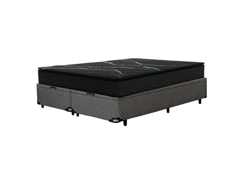 Colchão Queen Size Umaflex New Itália Black D26 com Molas Ensacadas e Pillow Top + Base Box Itaflex Universal com Baú 65,5x158x198 cm - Preto/Granite