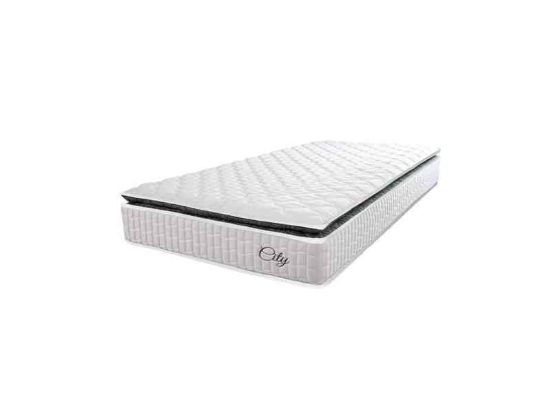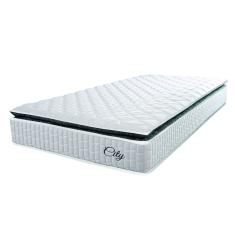 O menor preço encontrado no Brasil para Colchão Solteiro Molas Ensacadas City Pillow Top 88x188x23cm Branco/Preto Hellen - Suporta até 110kg por Pessoa atualmente é R$ 459,00.