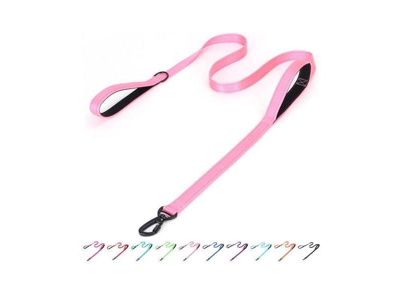 Bbmmayy Coleira refletiva de nylon para cães – a coleira de herói resistente com duas alças para treinamento noturno de segurança – para cães de estimação de raças pequenas, médias e grandes (rosa,