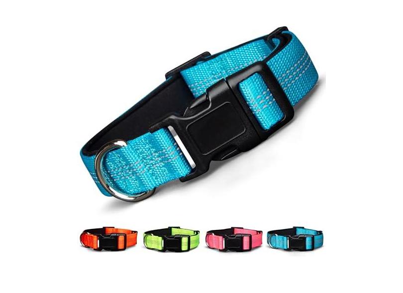 BLAZIN Coleira refletiva para cães 'Color Me Happy!' para dia e noite - Coleira acolchoada de neoprene macio ajustável em 4 cores vibrantes - mantém os cães seguros e elegantes - para uso diário