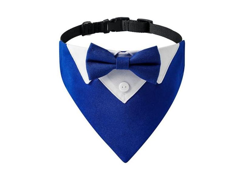 Bnibol Coleira de smoking para cães para casamento, noivado e aniversário, fantasia formal de coleira bandana com gravata borboleta azul e fivela ajustável, adequada para cães pequenos, médios e