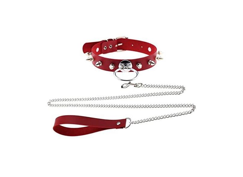 Caiyao Gargantilha de rebites punk corrente de transporte colar de couro PU anel de metal colar gótico boate coleira gótica cintos tamanho ajustável, Metal, couro