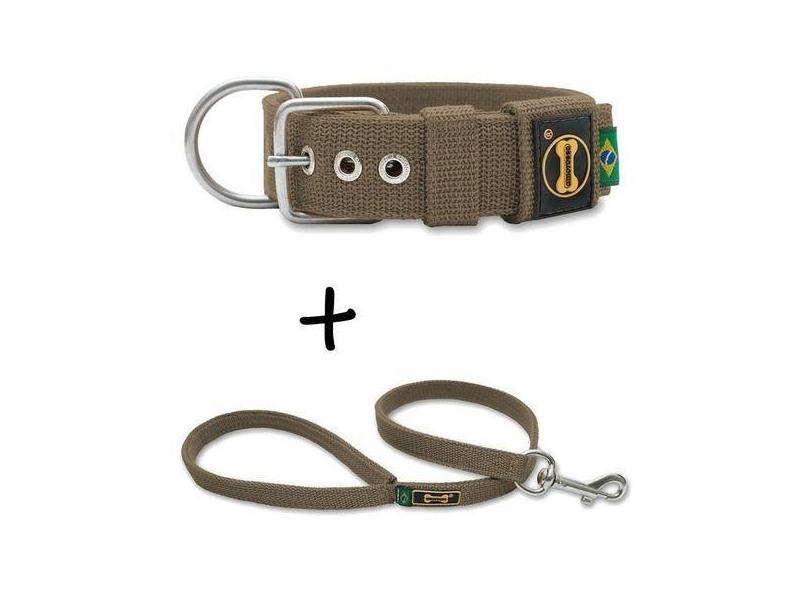 Coleira Cachorro Grande Pit Bull + Guia 80cm (Areia) - Amorosso