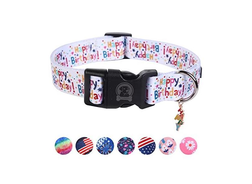 Coleira de aniversário para cães MR. CHUBBYFACE com padrões macia ajustável para meninos e meninas para cães pequenos, médios e grandes