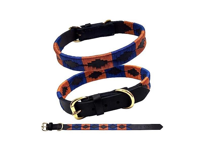 Coleira de couro genuíno para cães costurada à mão polo argentino design bordado fivela de latão forte à prova de ferrugem | Melhor para filhotes, raças pequenas, médias e grandes | pescoço ajustável