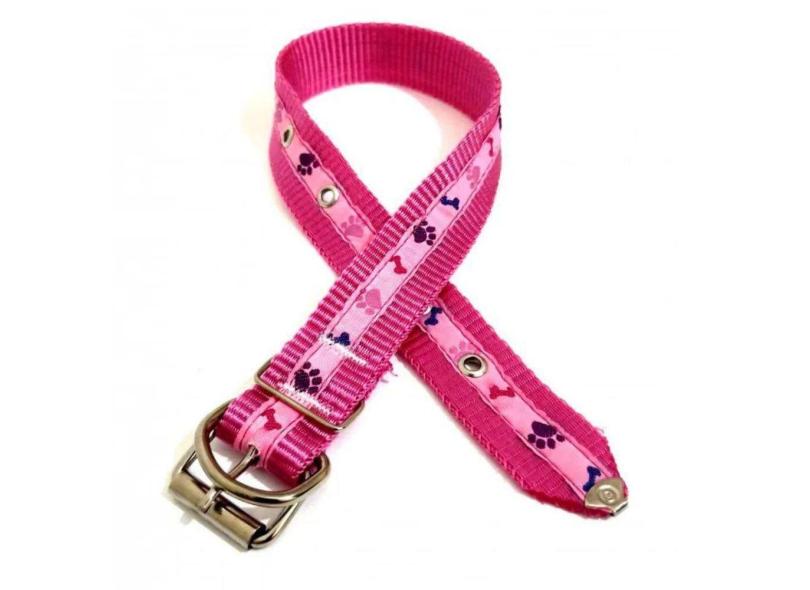 Coleira Nylon Cachorro Nicapet Cor Rosa Nº 3 Pata Osso 25Mm