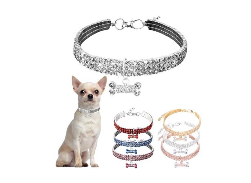 Coleira para animais de estimação com diamantes, coleira de cachorro de strass com pingente de osso de cristal brilhante, coleiras de cachorro com joias brilhantes para meninas, gatos e cães,