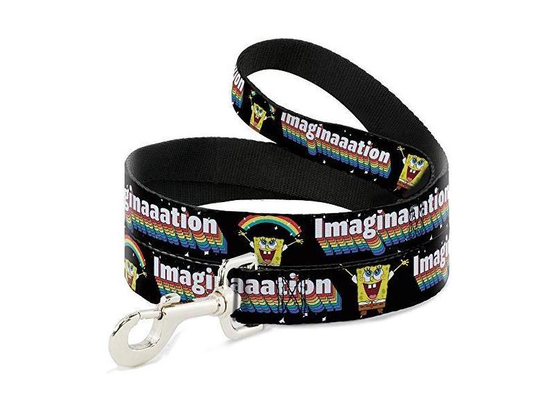 Coleira para cães Bob Esponja Braços Up Rainbow Pose Imaginaaation Preto Multi 1,5 pés de comprimento, 3,8 cm de largura