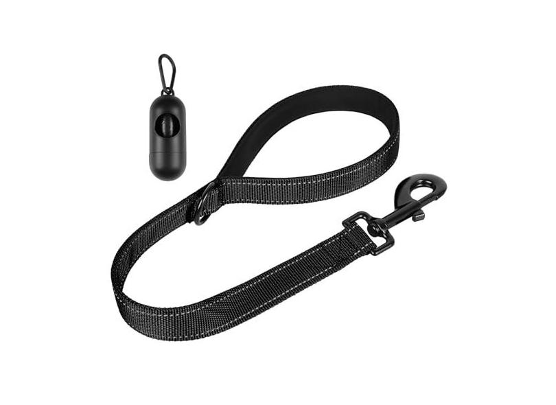 Coleira para cães, coleira curta, para cães de raças grandes, alça acolchoada para tráfego - guia de treinamento reflexiva, perfeita para cães de médio a grande porte (61 cm, preto)