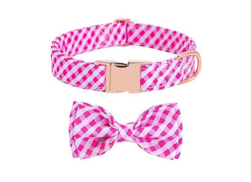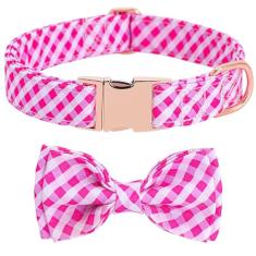 Coleira para cães com laço, coleiras xadrez rosa com laço destacável e fivela de metal, coleira ajustável presentes para cães pequenos, médios e grandes e meninas meninos