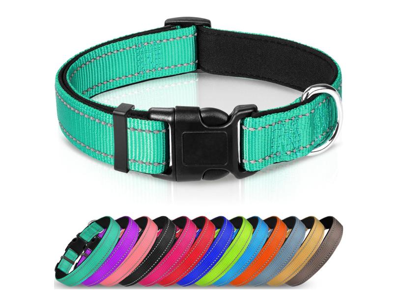 Coleira Para Cães Joytale Reflective Neoprene Acolchoada Nylon Teal