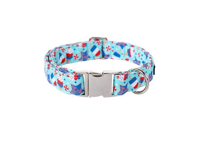 Coleira para cães Maca Bates 4 de julho com coleira atriótica ajustável para cães pequenos, acessórios para o Dia da Independência, presente para filhotes pequenos, médios e grandes GG
