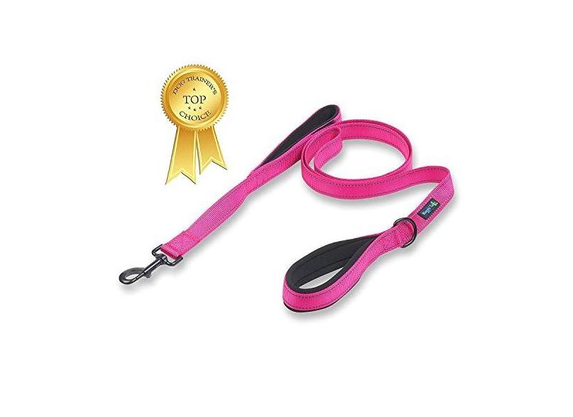 Coleira para cães Wagtime Club macia e grossa com alça dupla de 1,8 m, alças acolchoadas de força premium - cores vibrantes com opção reflexivaWaggin Tails rosa