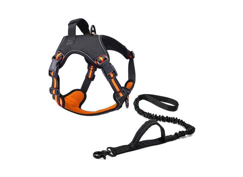 Coleira Peitoral Power + Guia Elástica Cachorro Madog Laranj