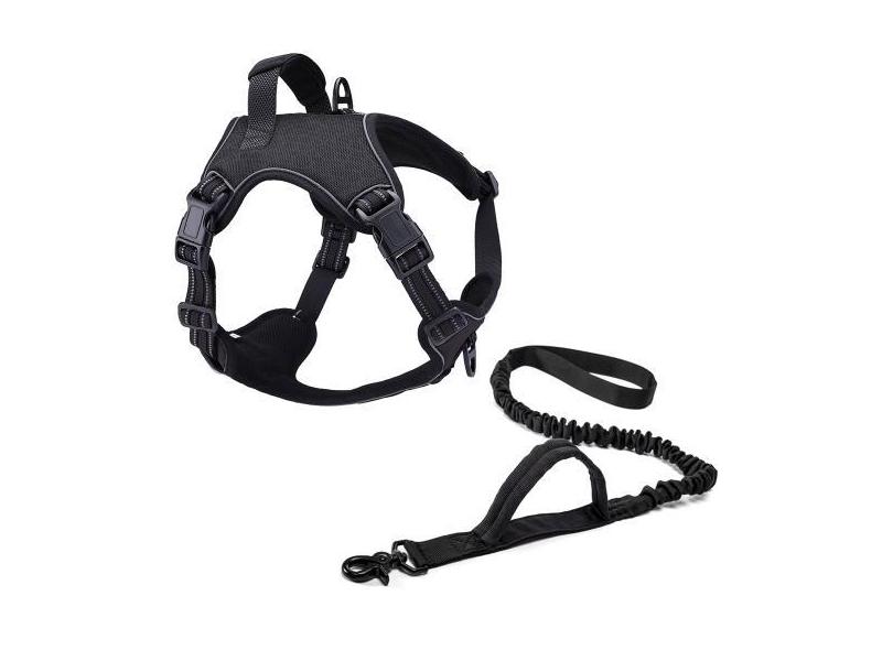 Coleira Peitoral Power + Guia Elástica Cachorro Madog Preto