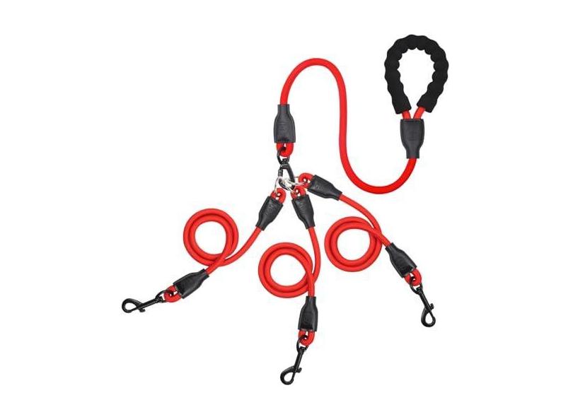 Coleira resistente para três cães, coleira para 3 cães, dispositivo giratório removível de 360°, coleira para vários cães com alça acolchoada, para caminhadas e treinamento, coleira para cães de duas