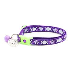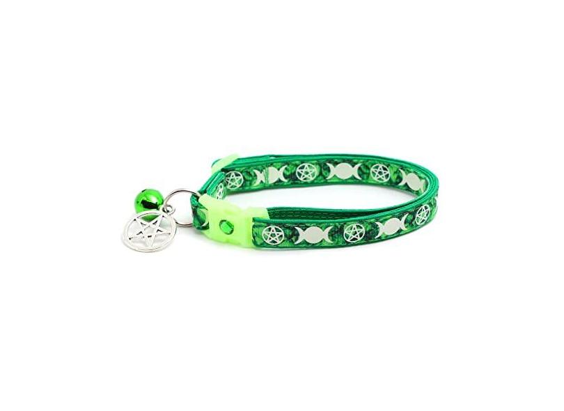 Coleira Wicca para gatos com amuleto oculto e sino | Coleira de gato familiar da bruxa | Berloques de coleira de gatinho de bruxa | Brilha no escuro | Coleira de segurança para separação (grande (4,5