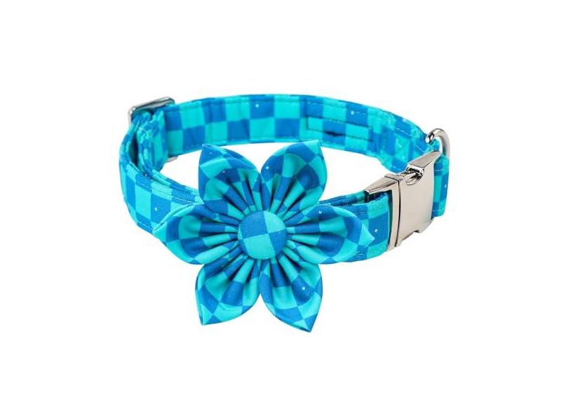 Coleira xadrez maca Bates flor verde menta azul com flores para cães ajustáveis coleiras fofas acessórios presente para cachorrinho pequeno, médio grande GG com fivela de metal dourado