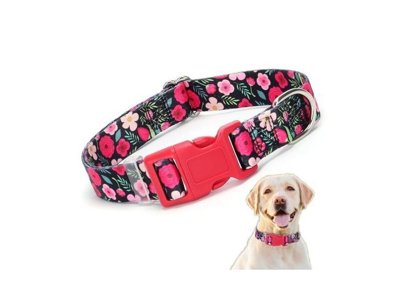 Coleiras fofas para cães fêmeas, design bonito padrão de flor, fivela de liberação rápida, coleiras de cachorrinho de nylon macio ajustável para PP, médio, grande, animal de estimação, meninas, gatos,
