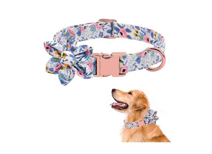 Coleiras para cães para filhotes pequenos, médios e grandes, coleira floral ajustável macia e confortável com fivela de segurança, flor destacável, 3 tamanhos para pescoços de 26 a 69 cm da DALUZ
