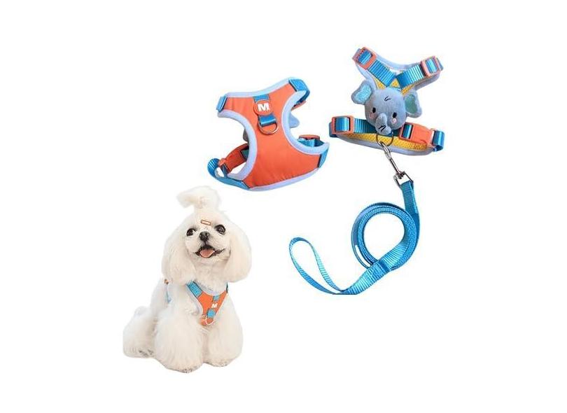 Conjunto de coleira e coleira para cães pequenos, colete de malha macia ajustável de quatro pontos e 1 fivela de liberação rápida, coleira para cães de nylon de 1,8 m com clipe giratório de 360 graus
