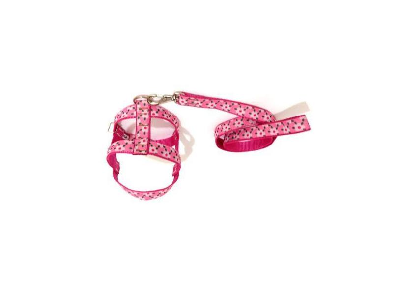 Conjunto Guia Peitoral 25mm Rosa Floral Tamanho 6 - Nica Pet