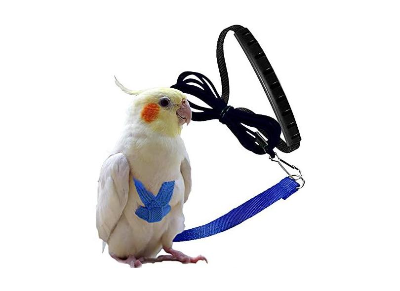 Dnoifne Peitoral e coleira de pássaro papagaio de estimação, design de treinamento ajustável, antimordida, corda de nylon para pássaros com asa fofa para papagaios, adequado para Alexandrine,