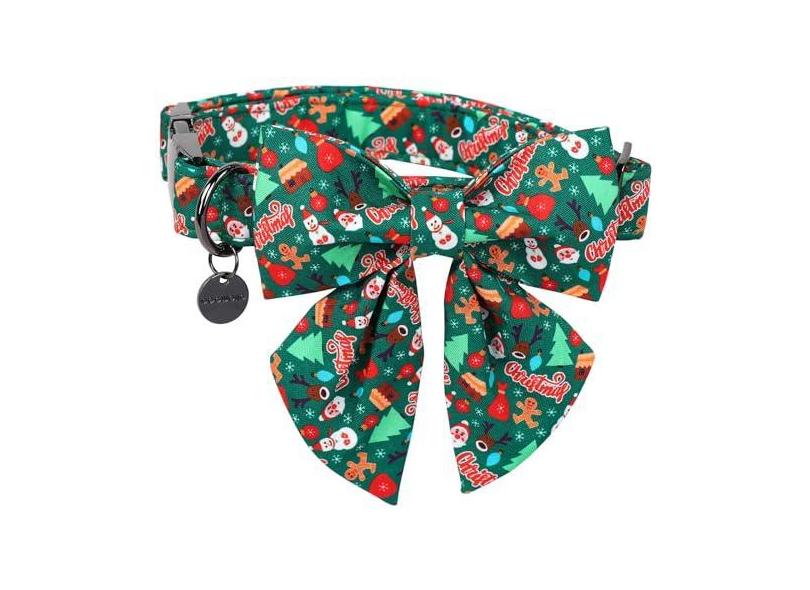 DOGWONG Coleira de Natal para cães com gravata borboleta de marinheiro, linda coleira de algodão para cães de Papai Noel verde, durável, macia, para cães pequenos, médios e grandes