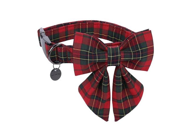 DOGWONG Coleira xadrez vermelha de Natal com gravata borboleta, coleira fofa de algodão, gravata borboleta vermelha para cães de estimação macia e durável para cães pequenos, médios e grandes