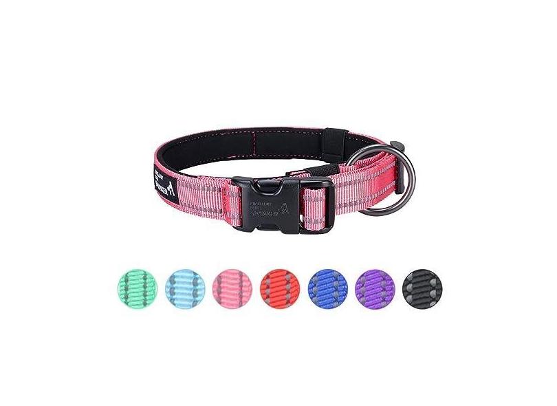 EXCELLENT ELITE SPANKER Coleira refletiva clássica macia acolchoada respirável de nylon ajustável para animais de estimação com fivela de liberação rápida para meninos, meninas, machos, fêmeas,