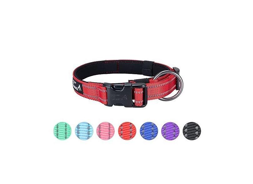 EXCELLENT ELITE SPANKER Coleira reflexiva clássica macia acolchoada respirável nylon ajustável para animais de estimação com fivela de liberação rápida para meninos, meninas, machos, fêmeas, filhotes