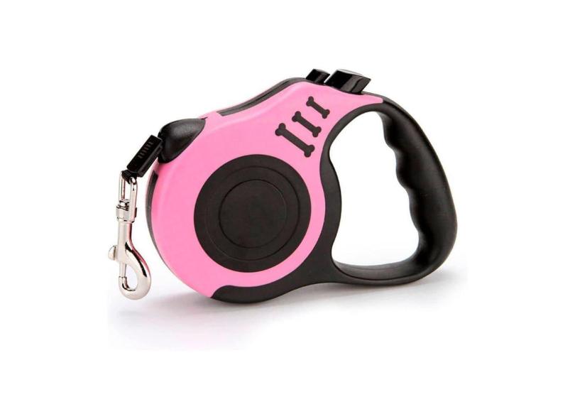 Guia Retrátil Puxador Resistente Seguro 20Kg 5 Metros - Rosa