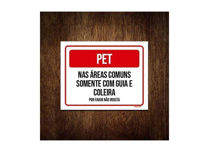 Kit 5 Placa Sinalização - Pet Áreas Comuns Guia Coleira - Sinalizo