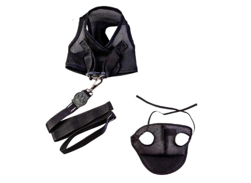 Kit Boné E Coleira Peitoral Com Guia Aerado Preto G