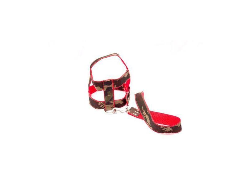 Kit Guia Peitoral 40mm Camuflado/Vermelho Tam 10 (77cm-93cm) - Nica Pe