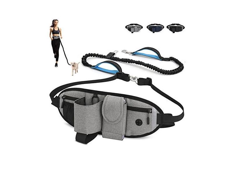 LAVAMOND Coleira de cintura para cães sem mão para cães pequenos e médios, coleira de corrida para cães com cinto ajustável, correia elástica retrátil para cães com clipe duplo para treinamento de